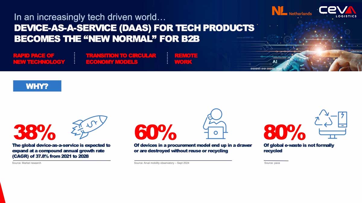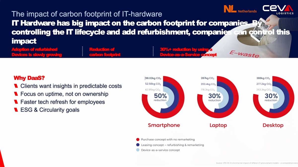At the Netherlands Pavilion during Mobile World Congress Barcelona 2026, representatives Gerard de Boer and Jorth Pieterson from CEVA Logistics outlined the growing importance of device-as-a-service (DaaS) models in the IT hardware market, with a particular focus on sustainability and supply chain optimisation.